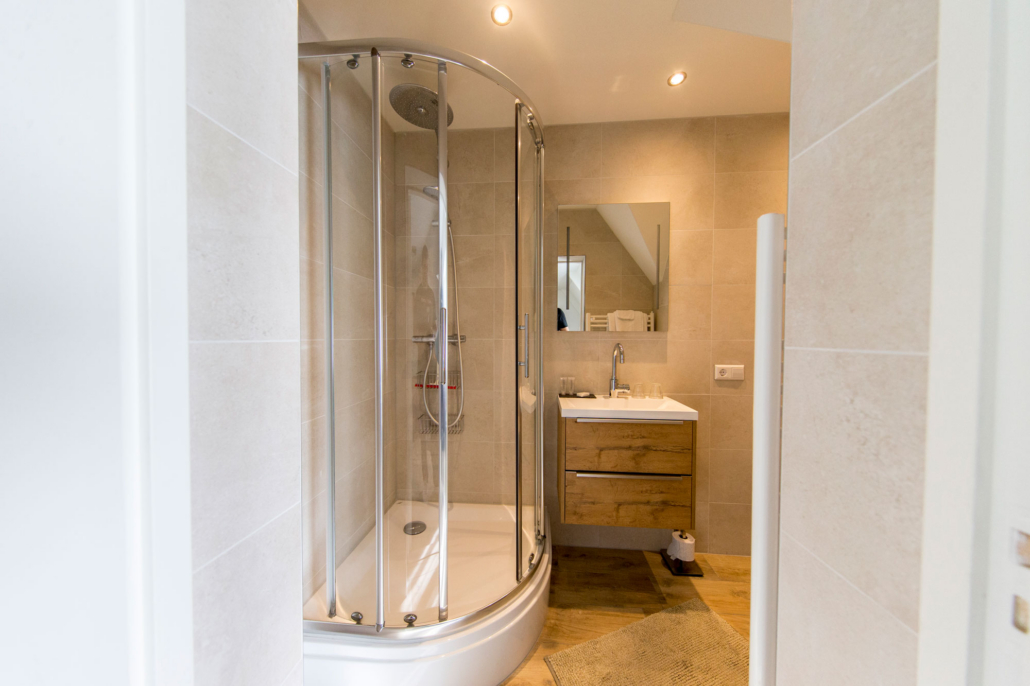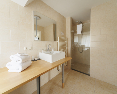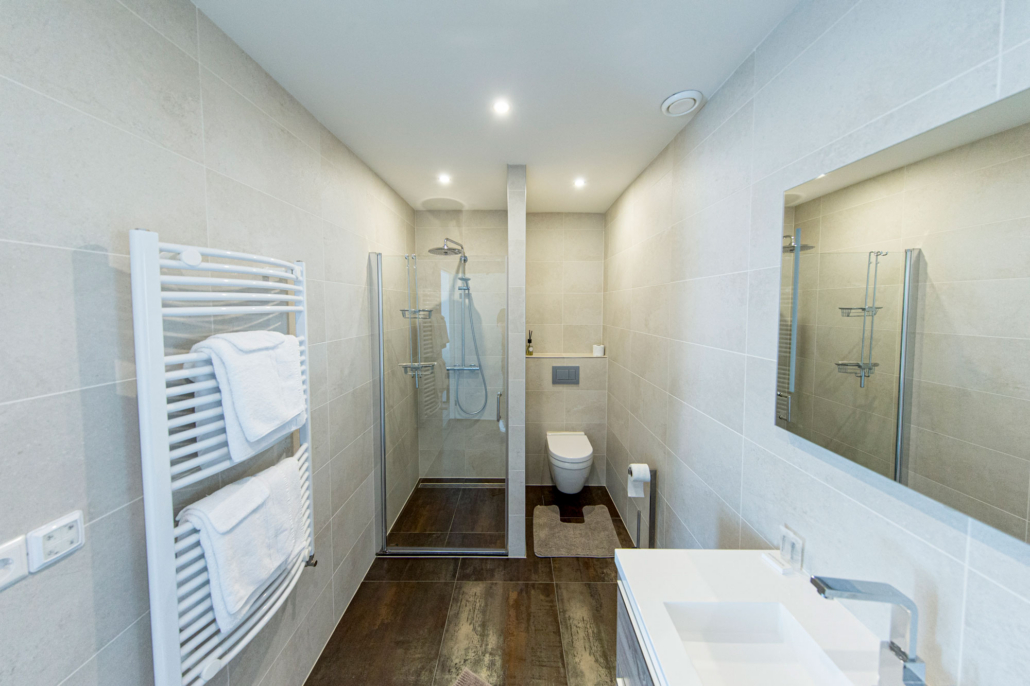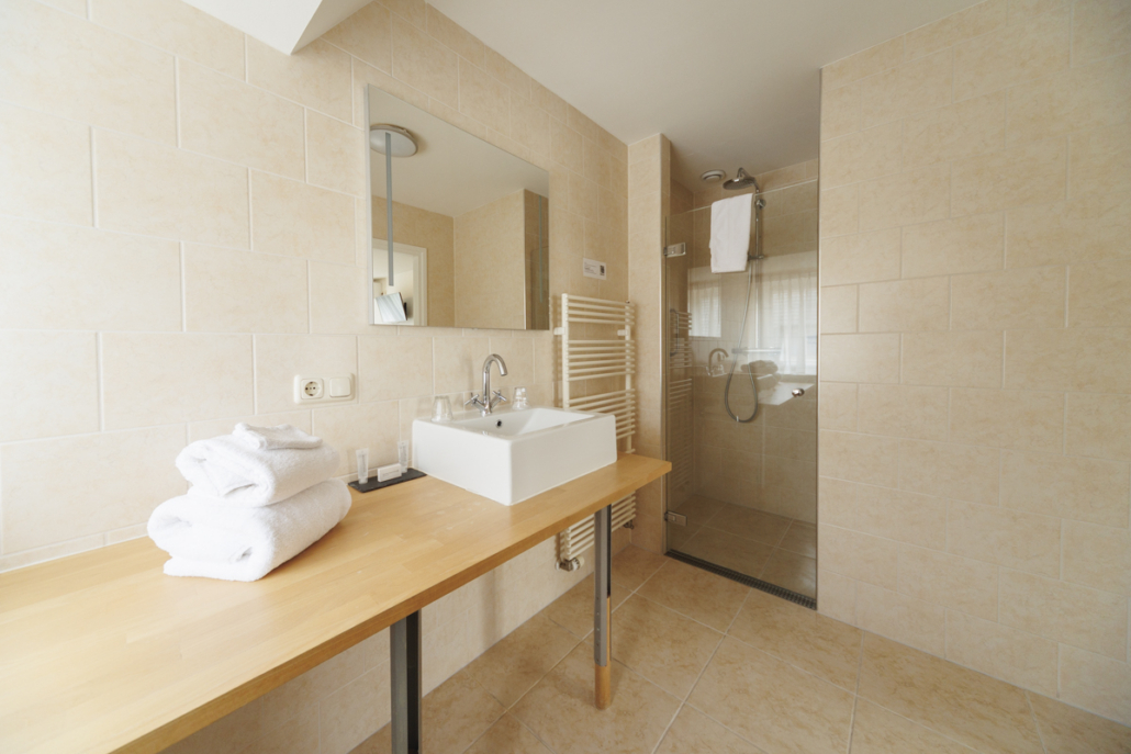 Badkamer met Douche & Toilet | Airconditioning | TV | Wifi | 2 enkele Swiss Sense bedden naast elkaar | Koffie- en Thee faciliteiten
